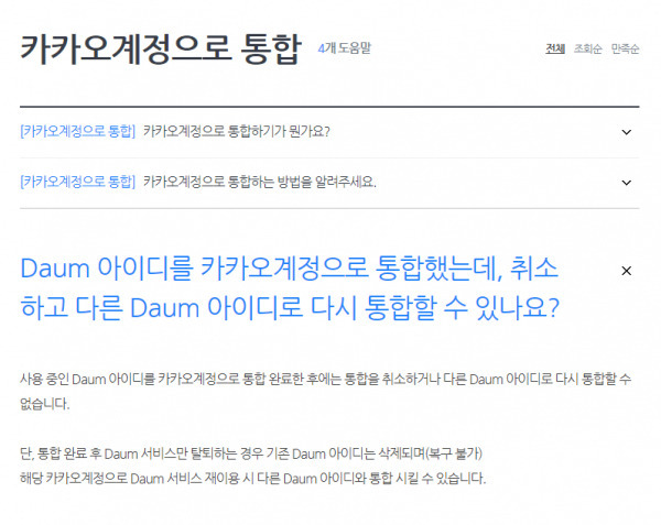 다음 메일 카카오 통합 해제 가능 여부