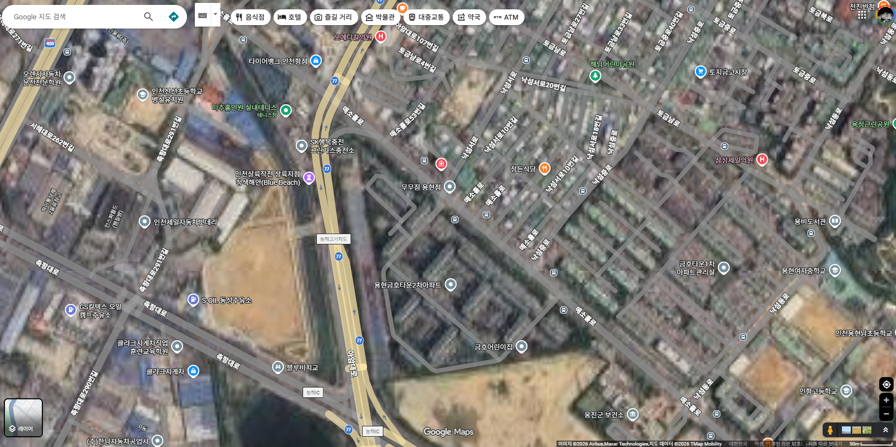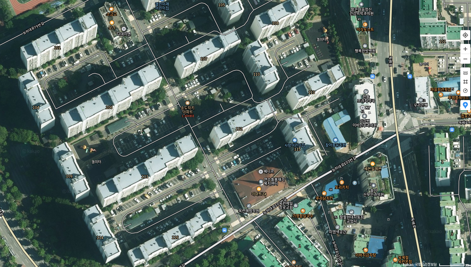 - 위성 촬영 기반 실사 지도 제공