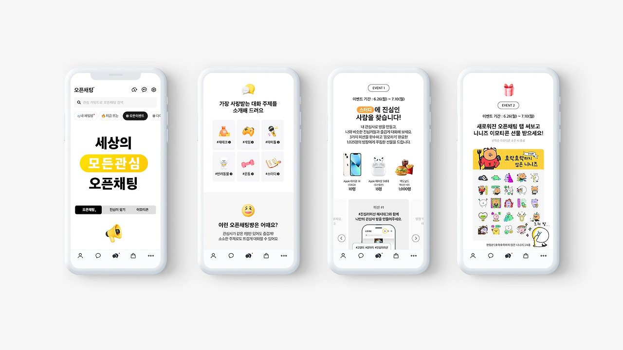 - 카카오톡 실행 후 하단 메뉴에서 ‘오픈채팅’ 선택