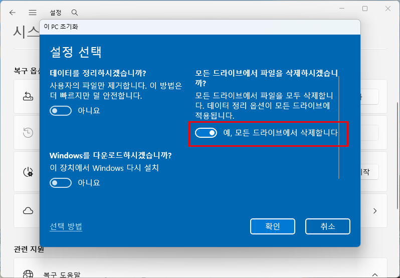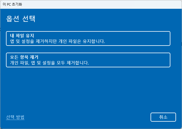 초기화 옵션 선택 방법