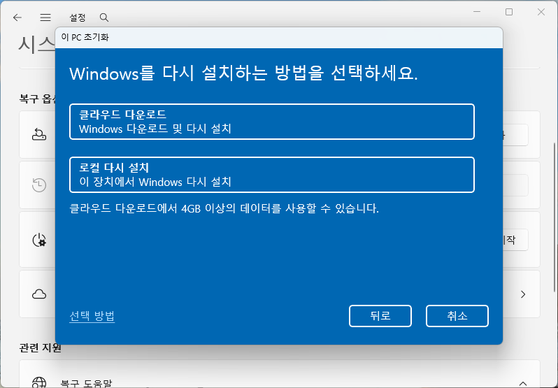 Windows 재설치 방식 선택