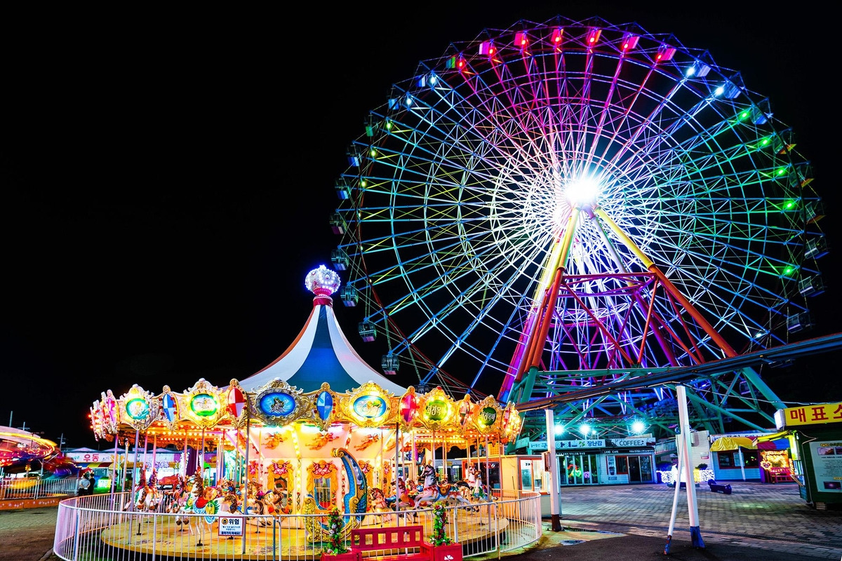 호수와 바다가 만나는 대형 관광지로 놀이시설과 전시시설이 결합된 복합 관광지입니다. 대관람차와 레트로 놀이기구, 군함 테마공원이 핵심 콘텐츠입니다. 특히 노을 시간대 서해대교와 어우러지는 풍경이 압도적입니다.